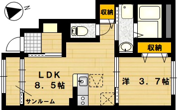 部屋の広さ LDK8.5帖・洋3.7帖 対象階数 2階建 1階