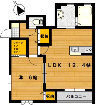 部屋の広さ LDK12.4帖・洋6帖 対象階数 2階建 1階