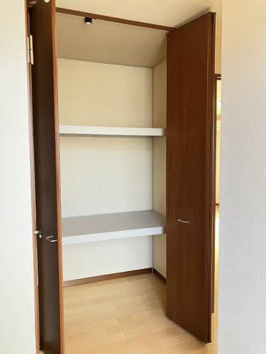 リビングに収納は無いんですが、隣の洋室にはウォークインクローゼットがついていて、さらにもう一つ収納がありますので、物の仕舞場所に困ることはないと思います。