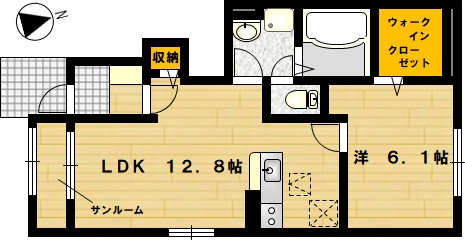 部屋の広さ | LDK12.8帖・洋6.1帖 | 対象階数 | 2階建 1階 | |
