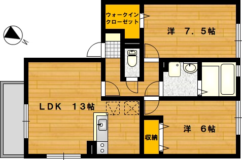 部屋の広さ | LDK13帖・洋6帖・洋7.5帖 | 対象階数 | 2階建 1階 | |