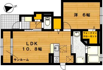 部屋の広さ LDK10.8帖・洋6帖 対象階数 2階建 1階