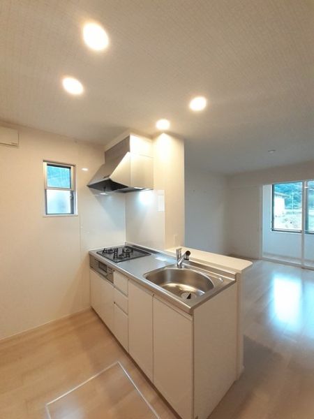 システムキッチン , 対面キッチン , 床下収納 , 追焚き機能 , 浴室乾燥機 , 洗髪洗面化粧台 , 水洗トイレ(洋) , 温水洗浄暖房便座 , 給湯 ,  BSアンテナ , TVモニターホン , 24時間換気システム , CATV , エアコン2台付 ,  サンルーム , 防犯キー , ペアガラス , 室外物置 , 洗濯機置場 , 室内物干し , プロパンガス ,