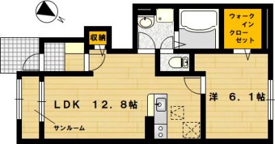 部屋の広さ | LDK12.8帖・洋6.1帖 | 対象階数 | 2階建 1階 | |