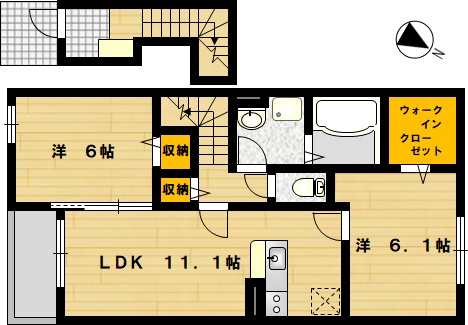 部屋の広さ LDK11.1帖・洋6.1帖・洋6帖 対象階数 2階建 2階