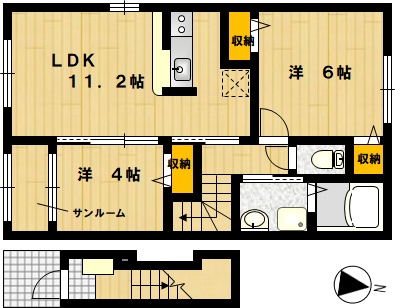 部屋の広さ | LDK11.2帖・洋6帖・洋4帖 | 対象階数 | 2階建 2階 | |