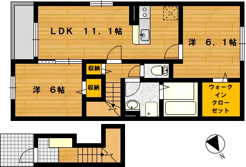 部屋の広さ 洋6.1帖・洋6帖・LDK11.1帖 対象階数 2階建 2階