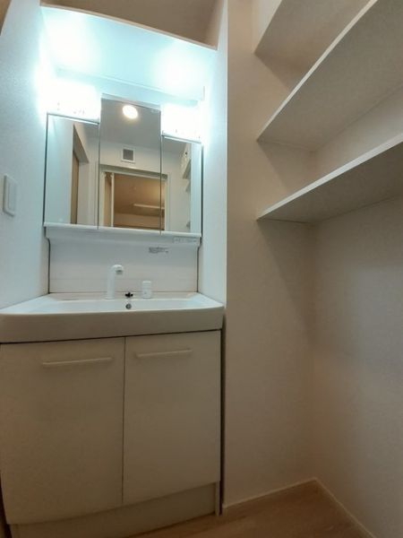 トイレ・洗面・浴室もスタイリッシュになっており、洗面所にある棚がタオル置き、洗剤置きなどでかなり使えます!