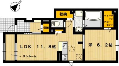 部屋の広さ | LDK11.8帖・洋6.2帖 | 対象階数 | 2階建 1階 | |