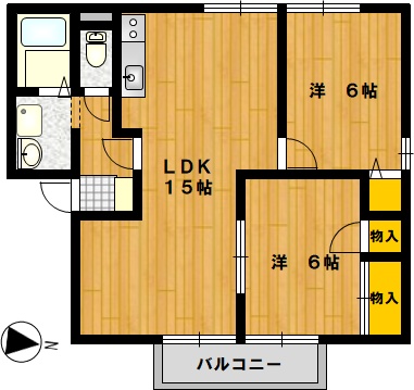 部屋の広さ 洋6帖×2・LDK15帖 対象階数 2階建 1階