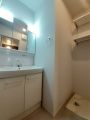 少し広めのお部屋希望単身者にちょうどよさそうな1LDKで、キッチンは対面式のシステムキッチンで8.4帖に、造り付けの棚付きです。