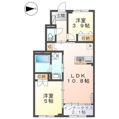 部屋の広さ LDK10.8帖・洋5帖・洋3.9帖 対象階数 2階建 1階