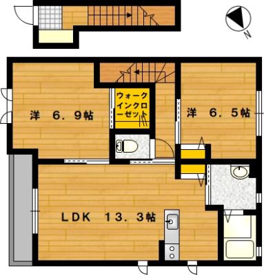 部屋の広さ 洋6.5帖・洋6.9帖・LDK13.3帖 対象階数 2階建 2階