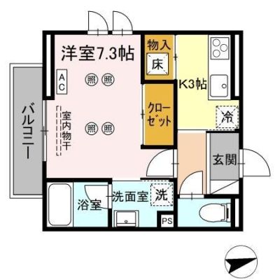 部屋の広さ | K3帖・洋7.3帖 | 対象階数 | 3階建 1階 | |
