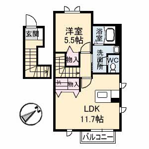 部屋の広さ LDK11.7帖・洋5.5帖 対象階数 2階建 2階