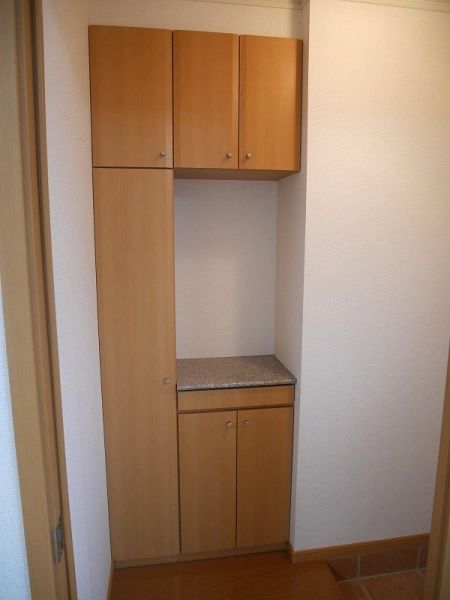 対面キッチン , 浴室乾燥機 , 洗髪洗面化粧台 , 水洗トイレ(洋) , 温水洗浄暖房便座 , 給湯 , エアコン , BSアンテナ , TVモニターホン , 照明器具 , ベランダ/バルコニー , 室外物置 , 洗濯機置場 , プロパンガス , |