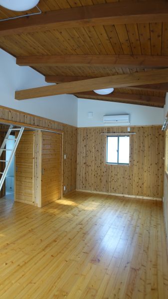 木目の可愛い室内、ロフト付き戸建1DK