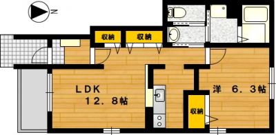 部屋の広さ 洋6.3帖・LDK12.8帖 対象階数 2階建 1階
