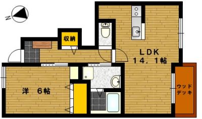部屋の広さ | 洋6帖・LDK14.1帖 | 対象階数 | 2階建 1階 | |