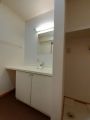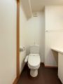 この物件、水周りのつくりが特徴的になっていて、洗面台・トイレ・洗濯機置場が一緒のスペースにあります。なんだかホテルっぽい印象を受けます。