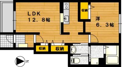 部屋の広さ | 洋6.3帖 ・LDK12.8帖 | 対象階数 | 2階建 1階 | |
