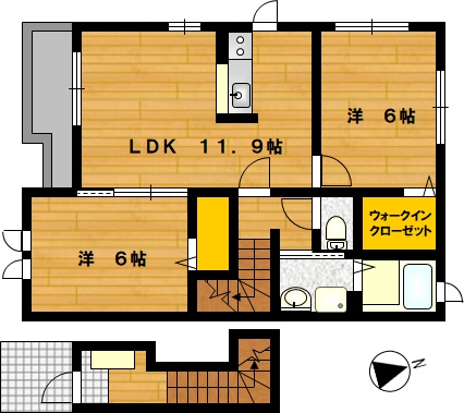 部屋の広さ | 洋6帖×2・LDK11.9帖 | 対象階数 | 2階建 2階 | |
