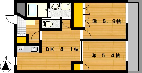 部屋の広さ 洋5.4帖・洋5.9帖・DK8.1帖 対象階数 2階建 1階