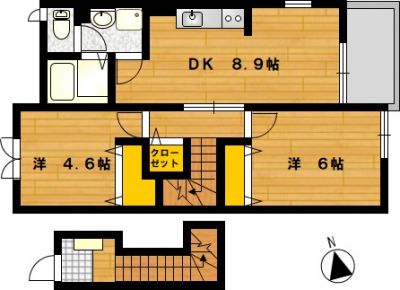 部屋の広さ | 洋6帖・洋4.6帖・DK8.9帖 | 対象階数 | 2階建 2階 | |
