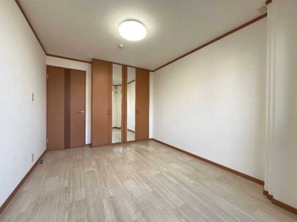 収納は天井高めで良く入るし、収納棚付き。さらに扉は姿見付ですよ。