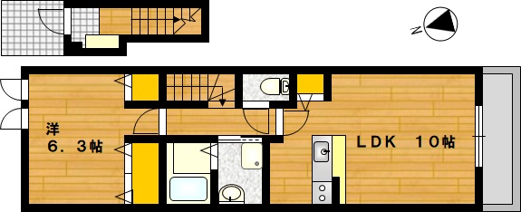 部屋の広さ | 洋6.3帖・LDK10帖 | 対象階数 | 2階建 2階 | |