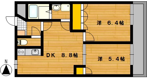 部屋の広さ 洋5.4帖・洋6.4帖・DK8.8帖 対象階数 2階建 1階