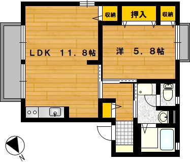 部屋の広さ LDK11.8帖・洋5.8帖 対象階数 2階建 1階