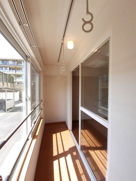 サンルームになってますので、外出時も洗濯物が干せたままにできるので助かります。