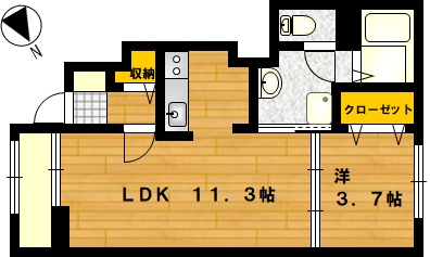 部屋の広さ 洋3.7帖・LDK11.3帖 対象階数 2階建 1階