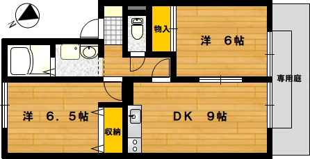 部屋の広さ 洋6.5帖・洋6帖・DK9帖 対象階数 2階建 1階