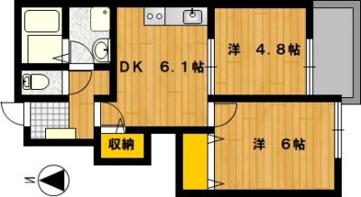 部屋の広さ 洋4.8帖・洋6帖・DK6.1帖 対象階数 2階建 1階