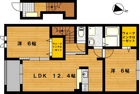 部屋の広さ | 洋6帖×2・LDK12.4帖 | 対象階数 | 2階建 2階 | |