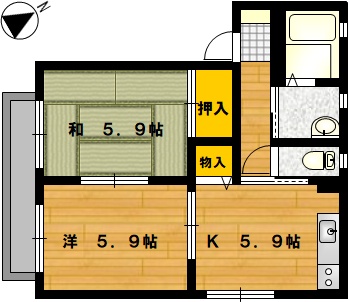 部屋の広さ K5.9帖・洋5.9帖・和5.9帖 対象階数 2階建 2階