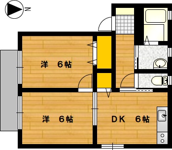 部屋の広さ | 洋6帖×2・DK6帖 | 対象階数 | 2階建 1階 | |