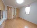 洋室8.7帖の広さで壁面収納もあります。