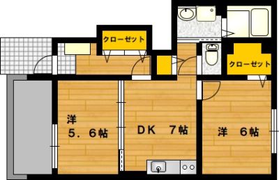 部屋の広さ 洋6帖・洋5.6帖・DK7帖 対象階数 2階建 1階