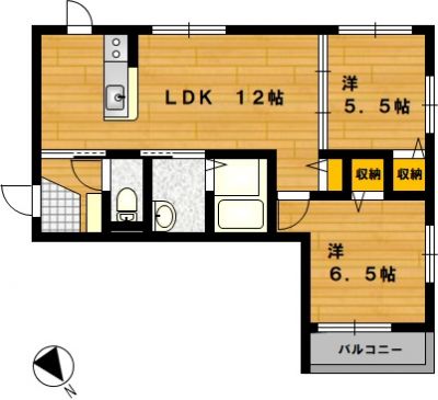 部屋の広さ | 洋6.5帖・洋5.5帖・LDK12帖 | 対象階数 | 3階建 1階 | |