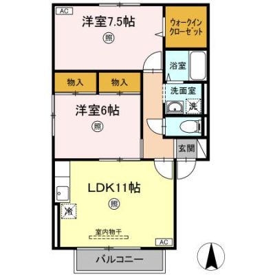部屋の広さ | 洋7.5帖・洋6帖・LDK11帖 | 対象階数 | 2階建 2階 | |