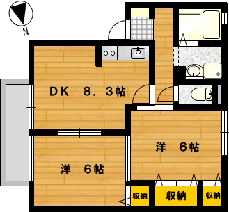 部屋の広さ | 洋6帖×2・DK8.3帖 | 対象階数 | 2階建 1階 | |