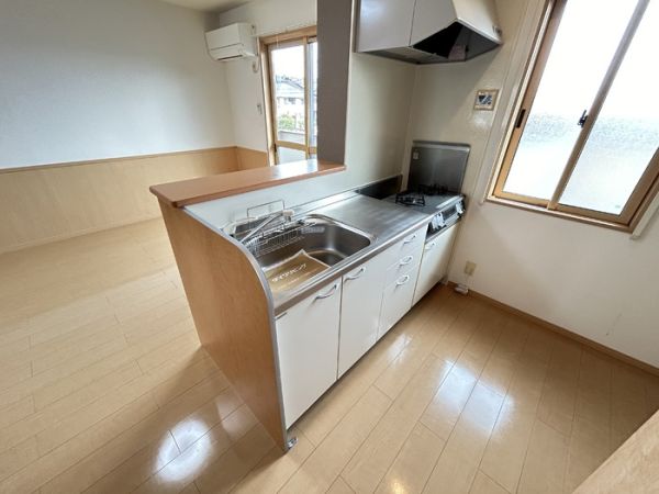 対面キッチン , ガスコンロ , 浴室乾燥機 , 洗髪洗面化粧台 , 水洗トイレ(洋) , 温水洗浄暖房便座 , 給湯 , TVアンテナ , TVモニターホン , 照明器具 , CATV , エアコン2台付 , ベランダ/バルコニー , カードキー , ペアガラス , 室外物置 , 洗濯機置場 , 室内物干し , プロパンガス , |