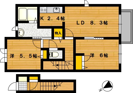 部屋の広さ 洋6帖・洋5.5帖・LDK10.7帖 対象階数 2階建 2階