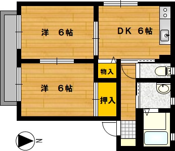 部屋の広さ 洋6帖×2・DK6帖 対象階数 2階建 1階