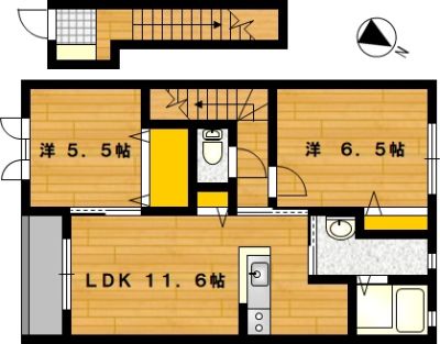 部屋の広さ | 洋6.5帖・洋5.5帖・LDK11.6帖 | 対象階数 | 2階建 2階 | |