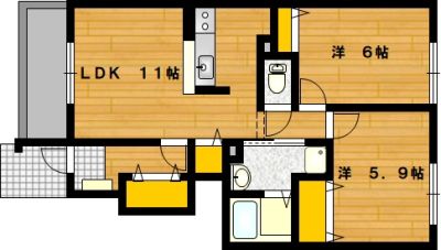 部屋の広さ | 洋6帖・洋5.9帖・LDK11帖 | 対象階数 | 2階建 1階 | |