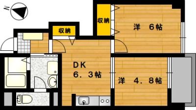 部屋の広さ | 洋6帖・洋4.8帖・DK6.3帖 | 対象階数 | 2階建 1階 | |